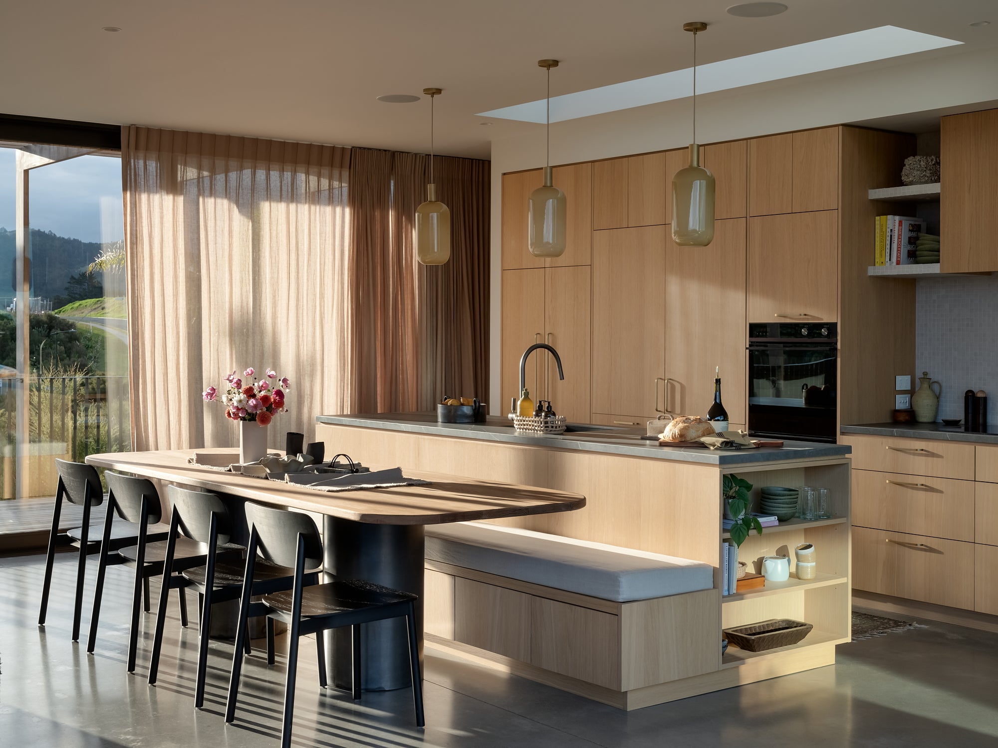 Featuring stunning vistas of the Whangamata coastline, this beachfront remodel blends modern sophistication with a laid-back coastal character, creating an ideal holiday retreat.