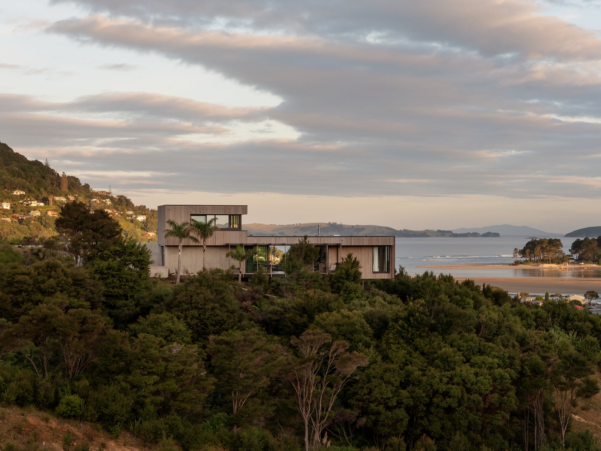 Harmonious with its surroundings, the award nominated Cantilever House seamlessly integrates natural materials, and offers sweeping views of the Coromandel coastline.